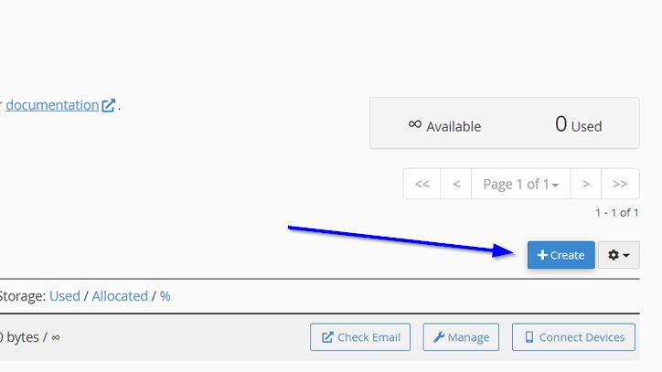 در پایان، روی گزینه Create کلیک کنید. در صورت موفقیتآمیز بودن عملیات، ایمیل info بلافاصله در لیست ایمیلها نمایش داده خواهد شد.