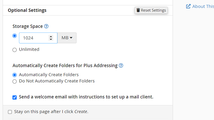 .Storage Space: میزان فضای ذخیرهسازی ایمیل را تعیین کنید (محدود یا نامحدود)