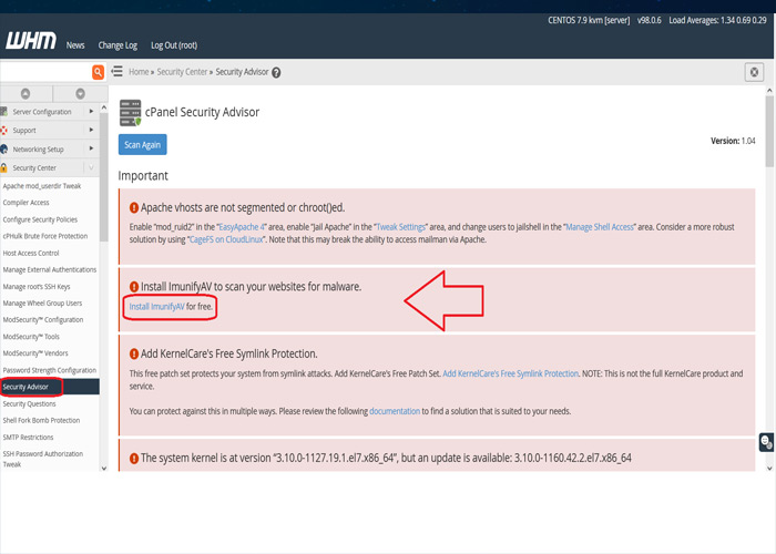 Imunify AV (رایگان): قابلیت شناسایی بدافزارها، پاکسازی دستی فایلها