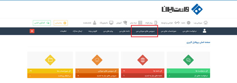 2.به بخش سرویسهای میزبانی من بروید.