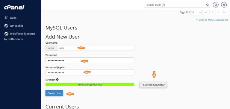 1.در همان صفحه MySQL Databases، به بخش MySQL Users بروید.