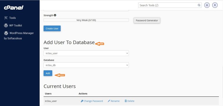 نام دیتابیس و نام کاربری باید به‌صورت کامل و همراه با پیشوند سی پنل (مثلاً: